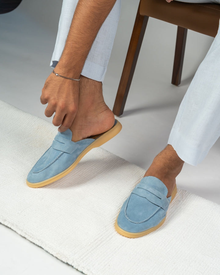 Skyline Slip – Men's Blue Suede Mule Loafers